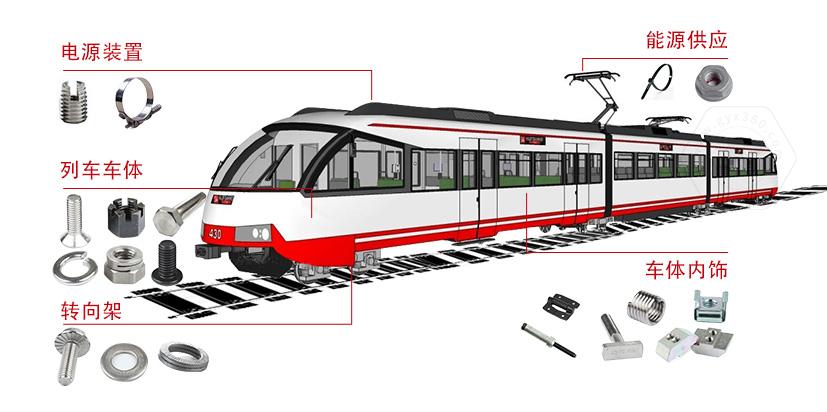 車(chē)體指乘客可見(jiàn)的車(chē)廂,內(nèi)飾,頂板,燈具,行李架,座椅等等。作為車(chē)體緊固件,其穩(wěn)定性和美觀度,實(shí)用性的都有較高的要求。車(chē)輛轉(zhuǎn)向架部分,結(jié)構(gòu)強(qiáng)且偏向轉(zhuǎn)彎的部分,其對(duì)緊固件的穩(wěn)定性、可靠性要求高。