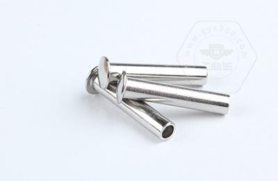 扁圓頭半空心鉚釘主要用于金屬薄板或皮革、帆布、木料等非金屬材料的鉚接場合。