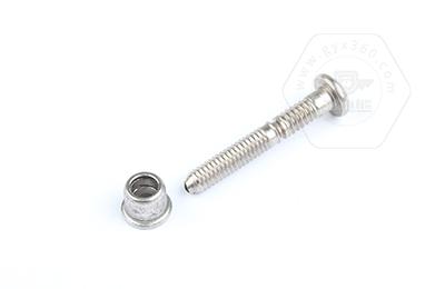 • 產(chǎn)品描述:環(huán)槽型抽芯鉚釘,使用專用的鉚接工具將2個(gè)被鉚接物件夾緊后,將套環(huán)的金屬擠壓并充滿到鉚釘栓柱的環(huán)狀凹槽中,讓套環(huán)和栓柱緊密結(jié)合的一種緊固方式。