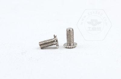 在使用過程中需在基體上開一個(gè)小孔,將壓鉚螺釘放入孔內(nèi),采用鉚壓設(shè)備平行的均勻的在頭部平壓,因壓鉚螺釘?shù)念^部下有齒紋壓花,當(dāng)壓入后,基體在壓鉚螺釘?shù)闹車a(chǎn)生變形,和齒紋發(fā)生咬合現(xiàn)象,從而形成一個(gè)牢固的外螺紋。
