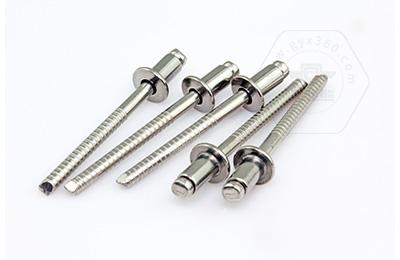鉚接時,鉚釘釘芯由專用鉚槍拉動,使鉚體膨脹,起到鉚接作用。這類鉚釘特別適用于不便采用普通鉚釘(須從兩面進行鉚接)的鉚接場合。故廣泛用于建筑、汽車、船舶、飛機、電器、家具等產(chǎn)品上。