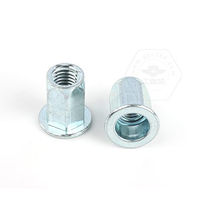 工業(yè)熊碳鋼藍(lán)白鋅平頭六角鉚螺母GB17880.5