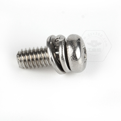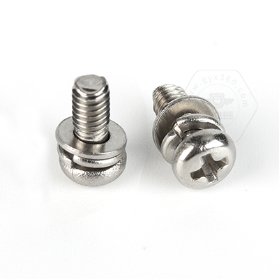• 產(chǎn)品描述:Q/DM-01 十字槽盤頭帶平彈墊組合螺釘,也稱為企標(biāo)盤頭三組合螺絲、十字半圓頭帶平彈墊組合螺絲、盤頭帶平彈墊連接副、十字盤頭帶平彈墊組合件機(jī)螺絲、十字盤頭螺釘平彈墊組合。螺釘為企業(yè)標(biāo)準(zhǔn) Q/DM-01-2015,標(biāo)準(zhǔn)規(guī)格范圍M1.6-M6,可選材質(zhì)有不銹鋼304,和H62銅。該螺釘由8 十字槽小盤頭螺釘、 組合件用彈簧墊圈以及平墊圈構(gòu)成,先將墊圈和螺釘穿在一起,再經(jīng)過搓絲而組成。組合后墊圈自由轉(zhuǎn)
