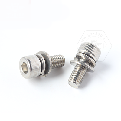 • 產(chǎn)品描述:DIN912 內(nèi)六角圓柱頭滾花帶平彈墊組合螺釘,是組合螺釘?shù)囊环N,又稱(chēng)為內(nèi)六角圓柱頭組合件、內(nèi)六角杯頭連接副、內(nèi)六角杯頭三組合螺絲、圓柱頭自帶平彈墊螺釘。DIN912 內(nèi)六角圓柱頭滾花帶平彈墊組合螺釘,由內(nèi)六角圓柱頭螺釘、平墊圈和彈墊先組合后,再搓絲,形成一個(gè)組合件,組合好后墊圈能自由轉(zhuǎn)動(dòng)且不會(huì)脫落。組合件使用方便,不用再另配平墊、彈墊,大大提高生產(chǎn)組裝效率。DIN912 內(nèi)六角圓柱頭滾花帶平彈墊