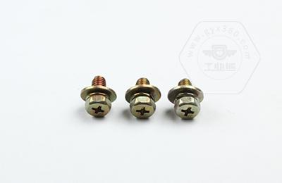 • 產(chǎn)品描述:組合螺釘,又稱為組合件,是指組合供應(yīng)的一類緊固件,如將某種中期螺釘或螺栓、自攻螺釘與平墊圈或彈簧墊圈、鎖緊墊圈組合供應(yīng)。 何謂二組合、三組合呢?二組合就是一螺絲配一平墊或是彈墊組合而成,三組合是螺絲配一彈墊和一個(gè)平墊組合而成。